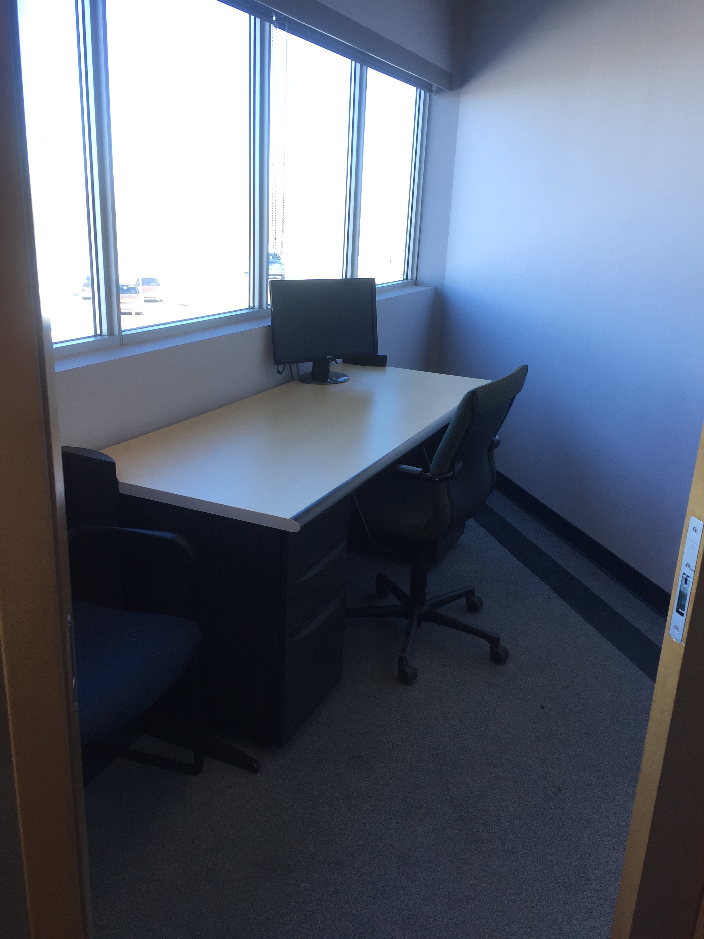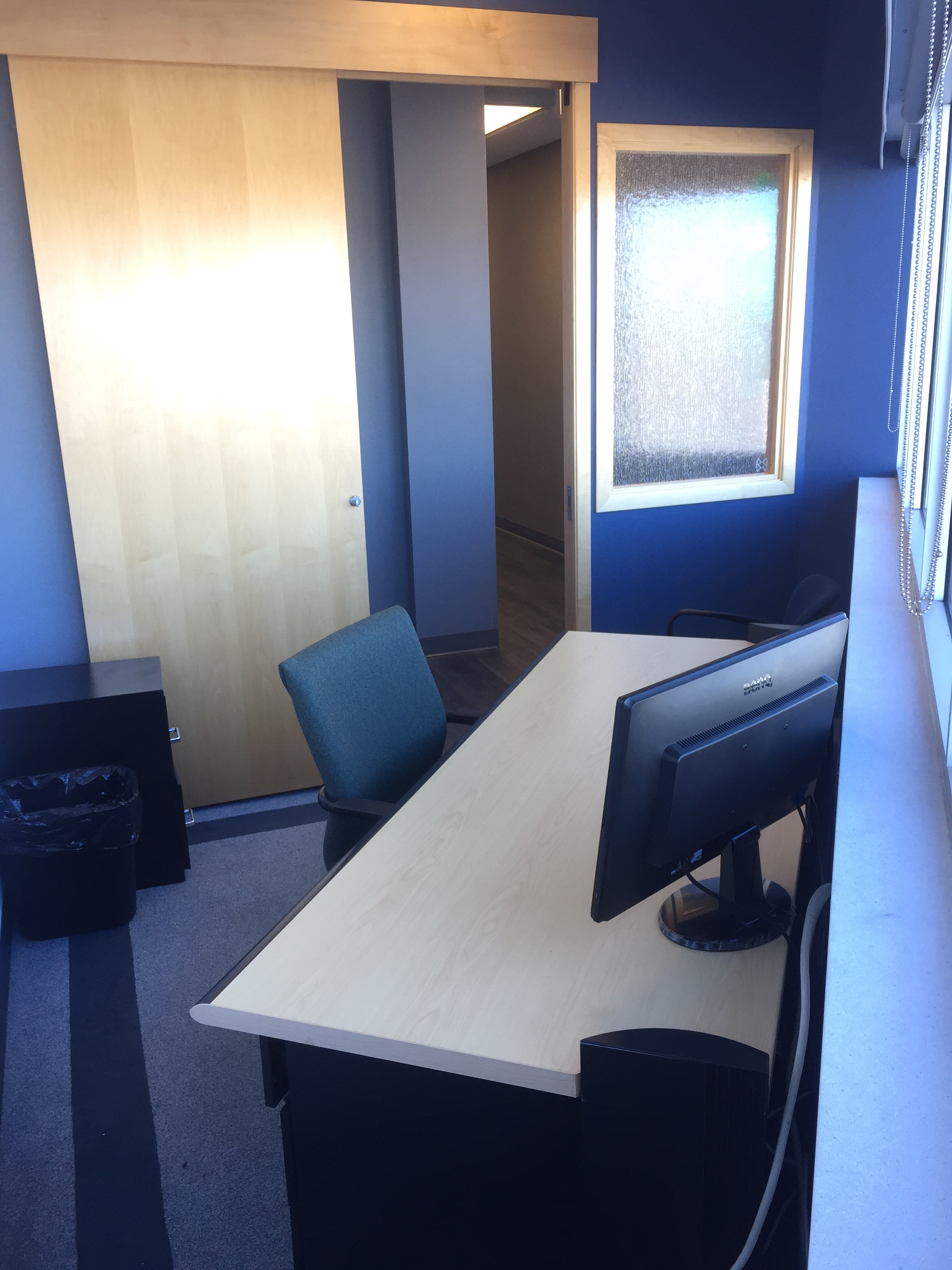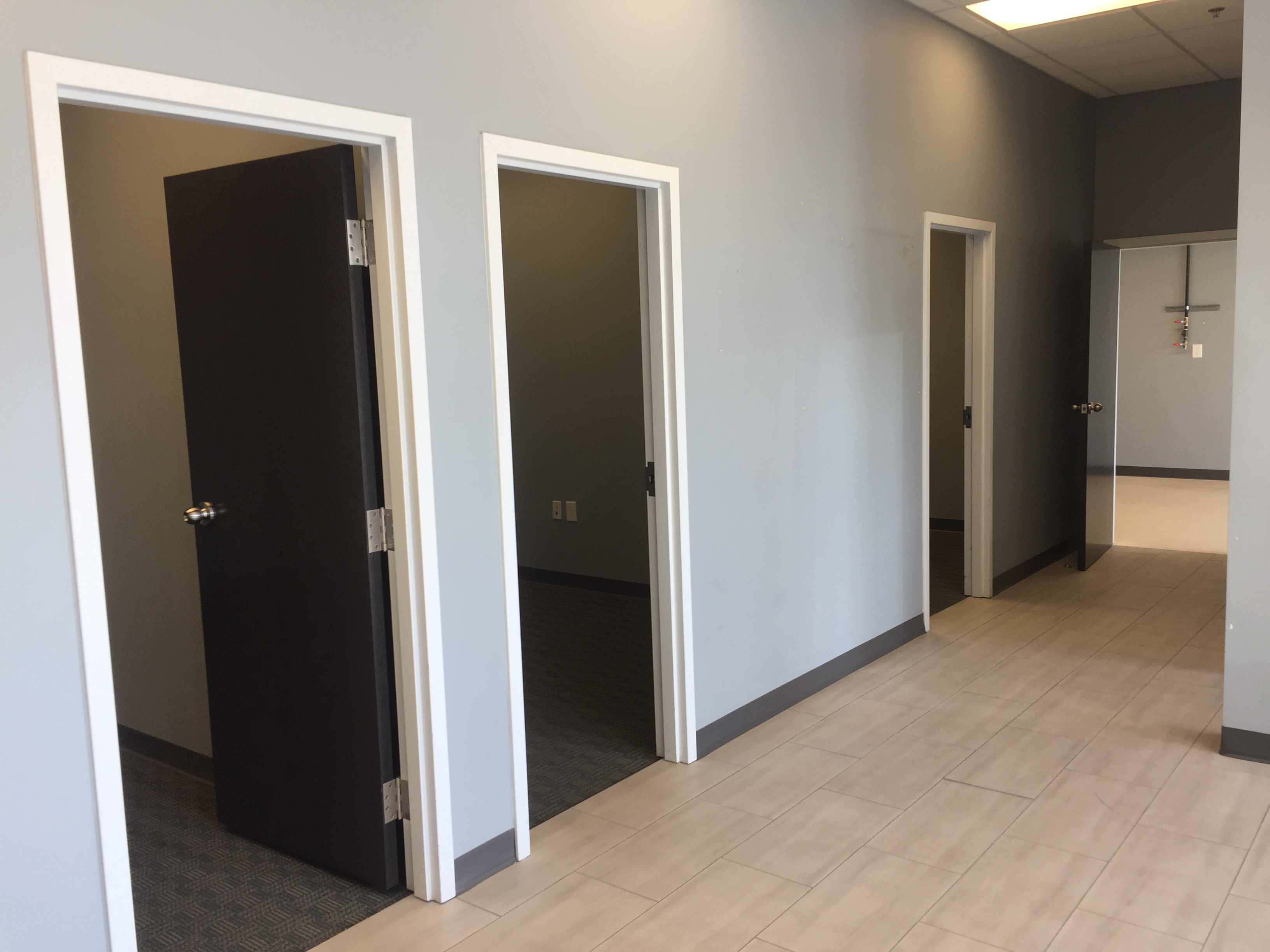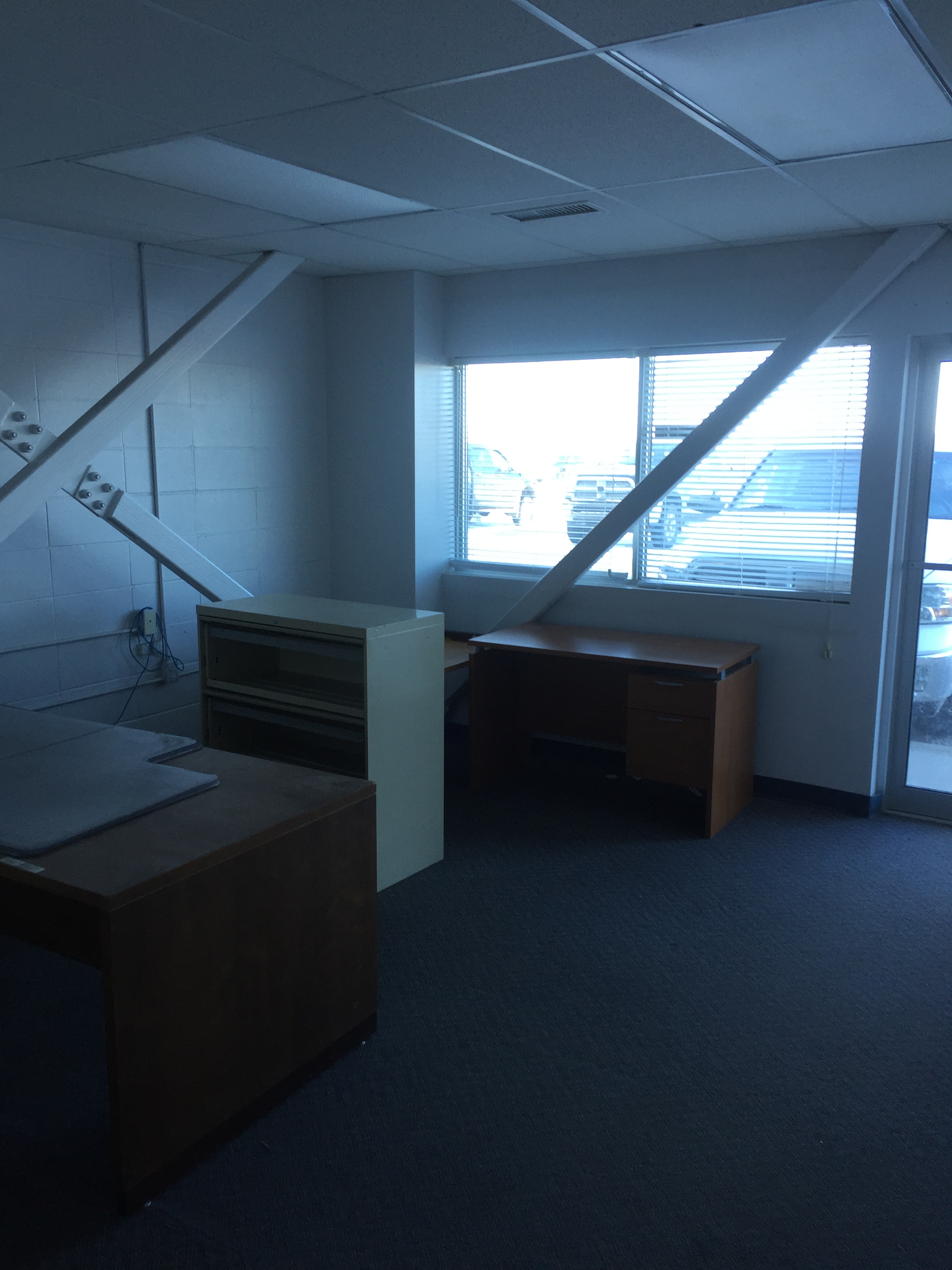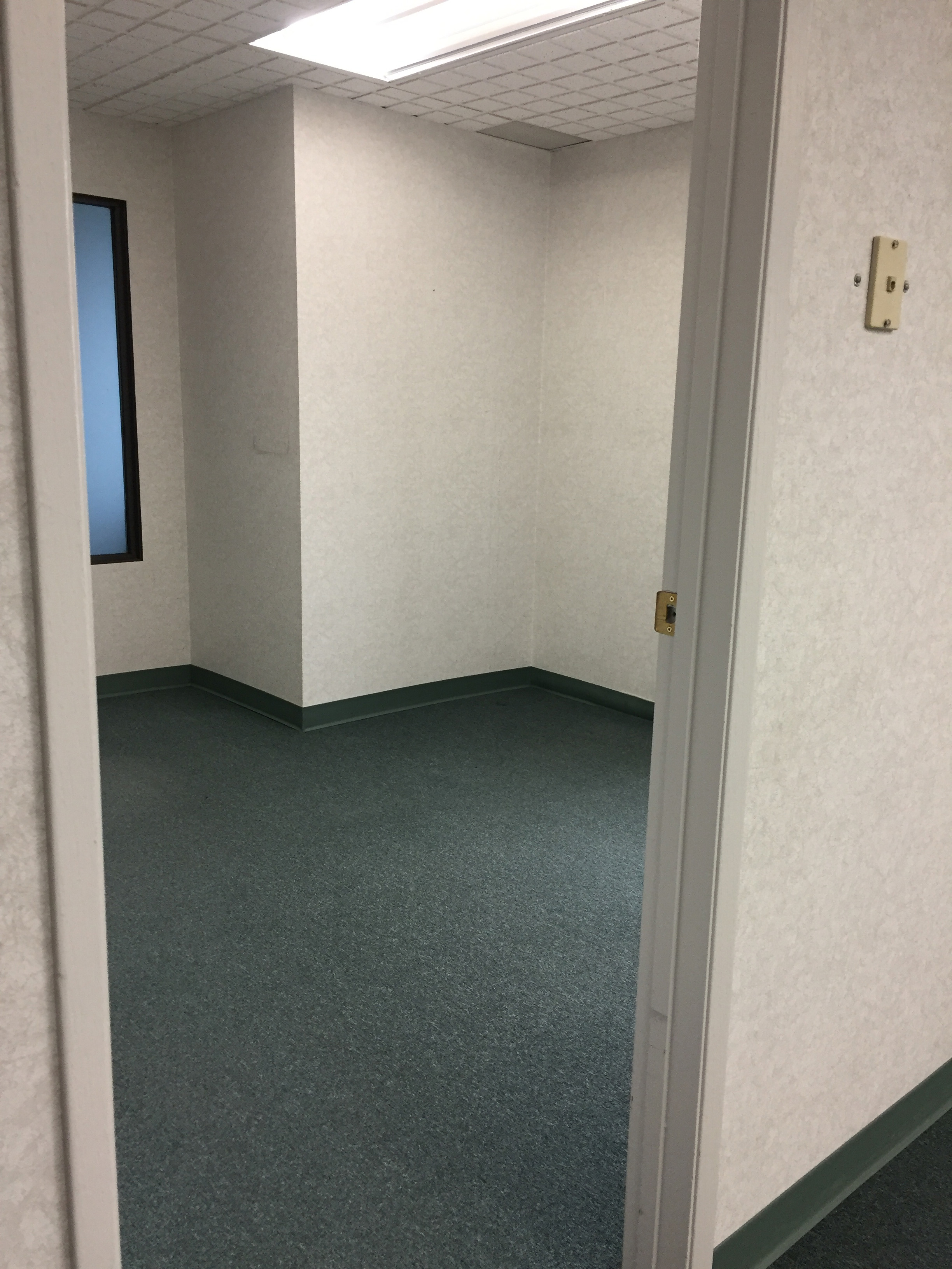 - 4 carpeted offices with sliding glass doors
