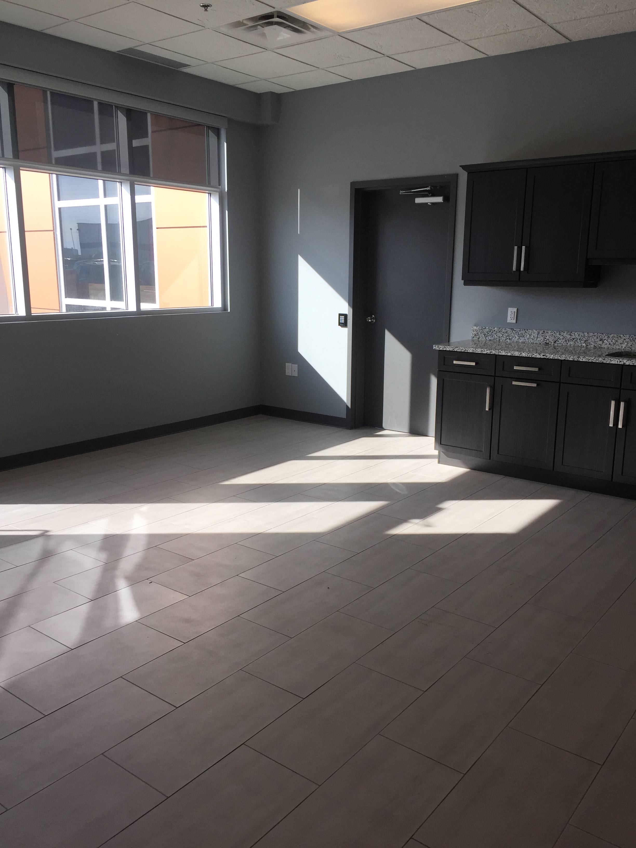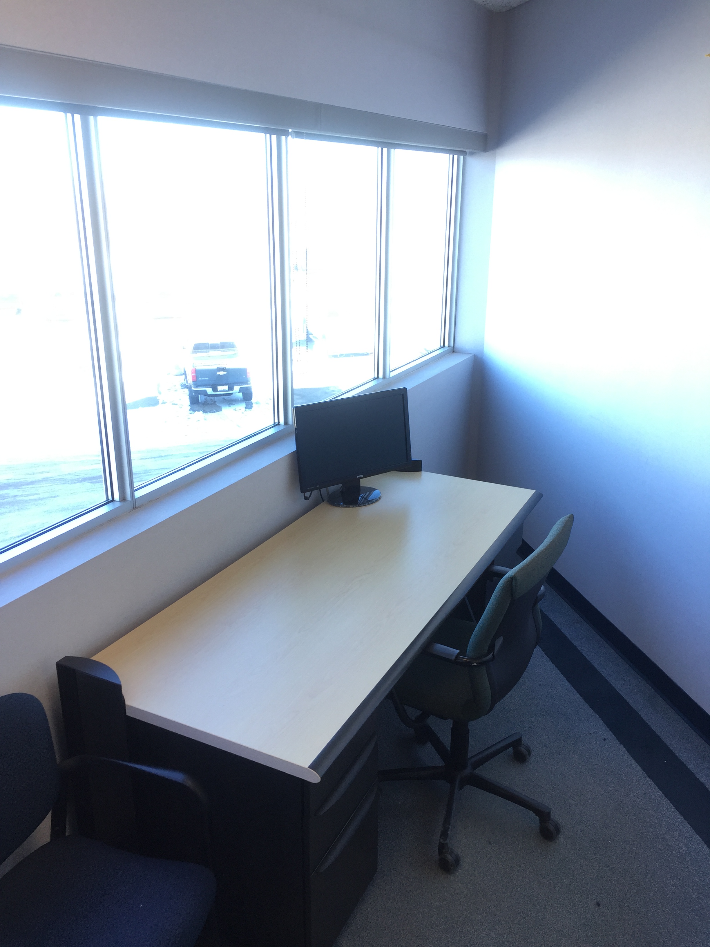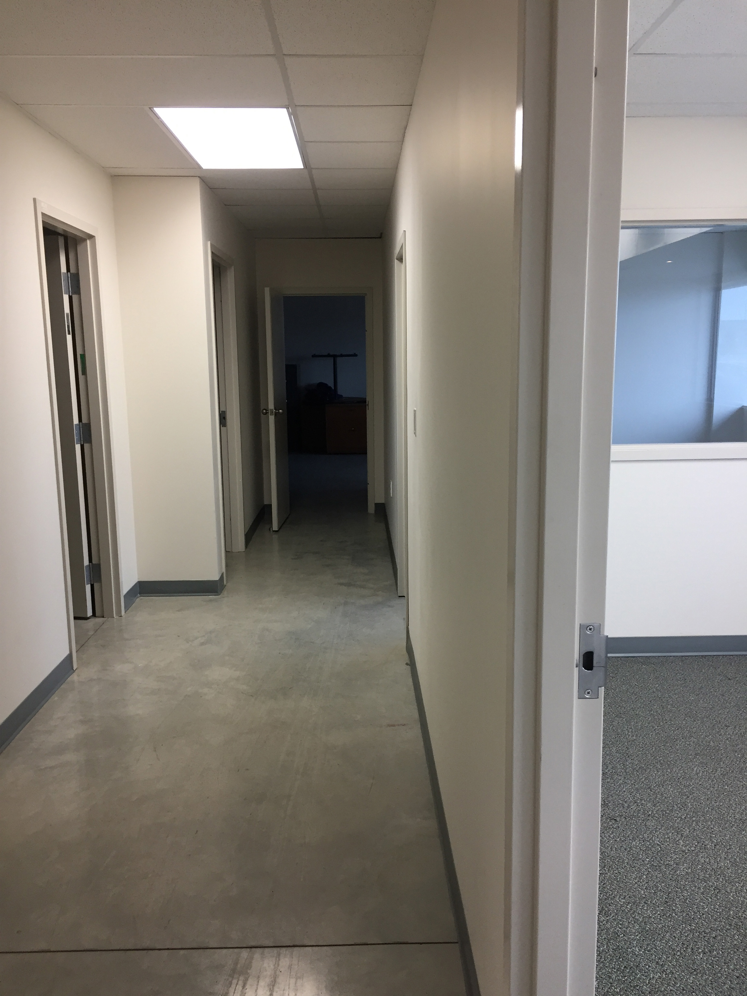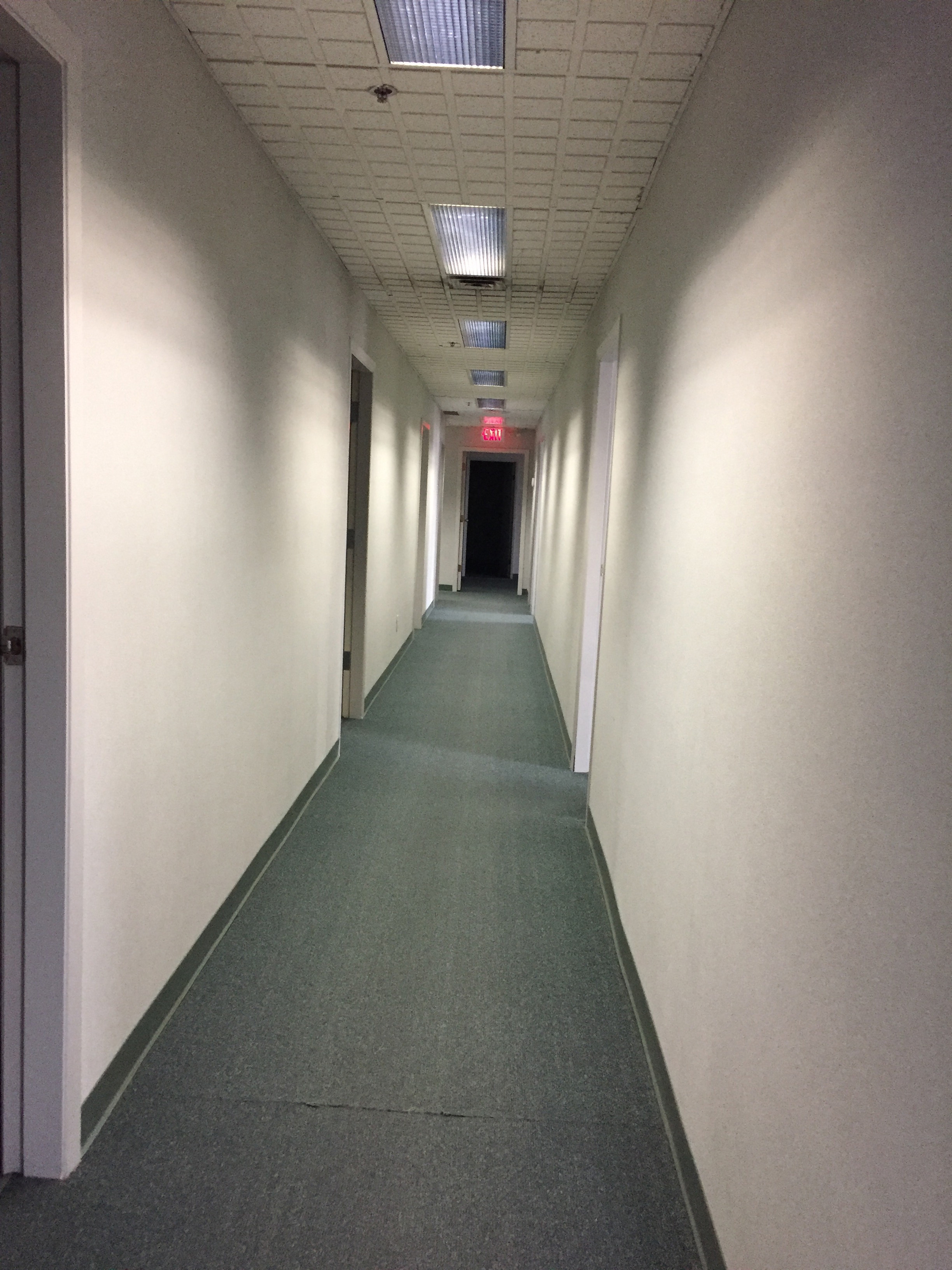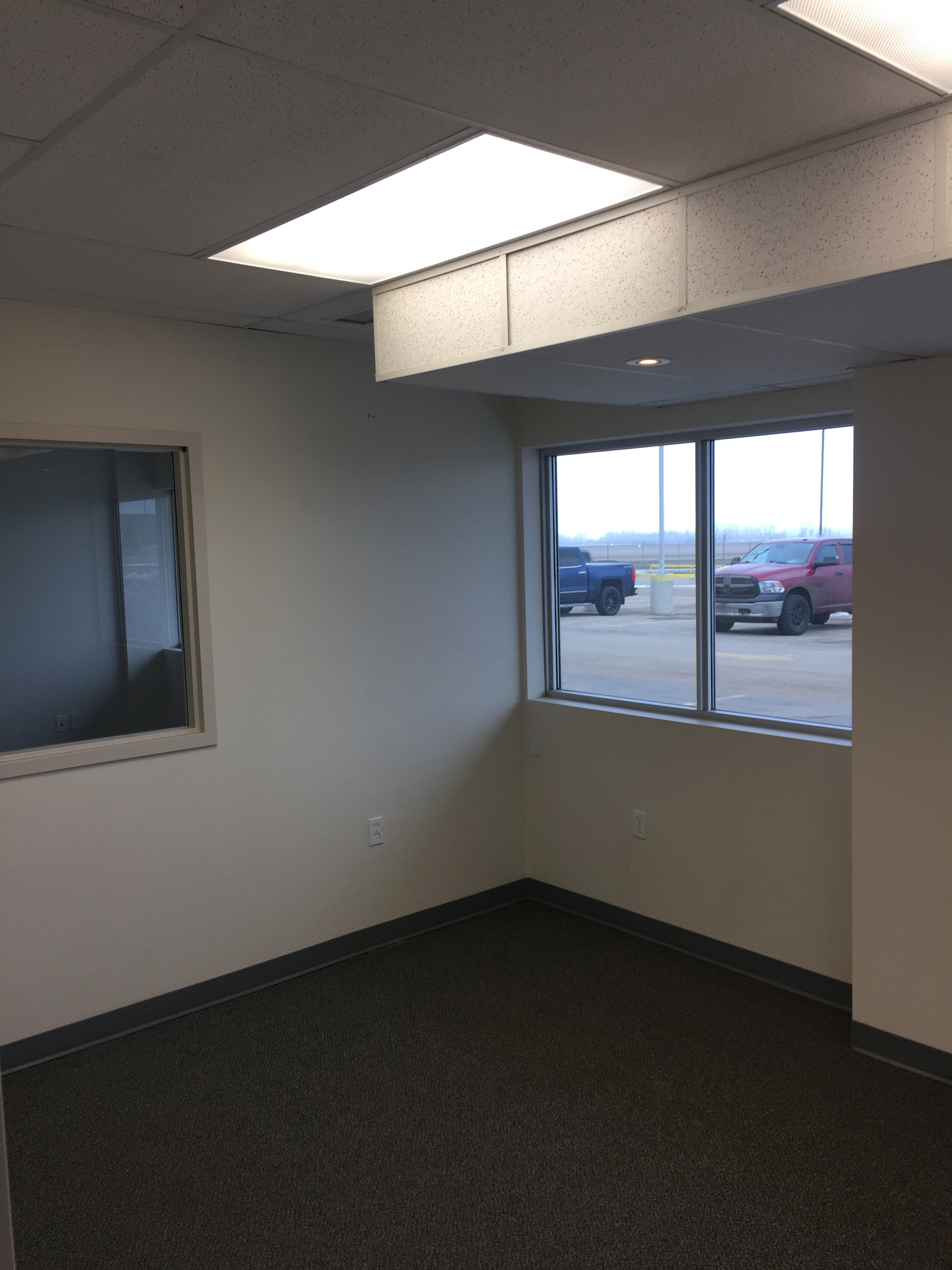 - 4 carpeted offices with sliding glass doors