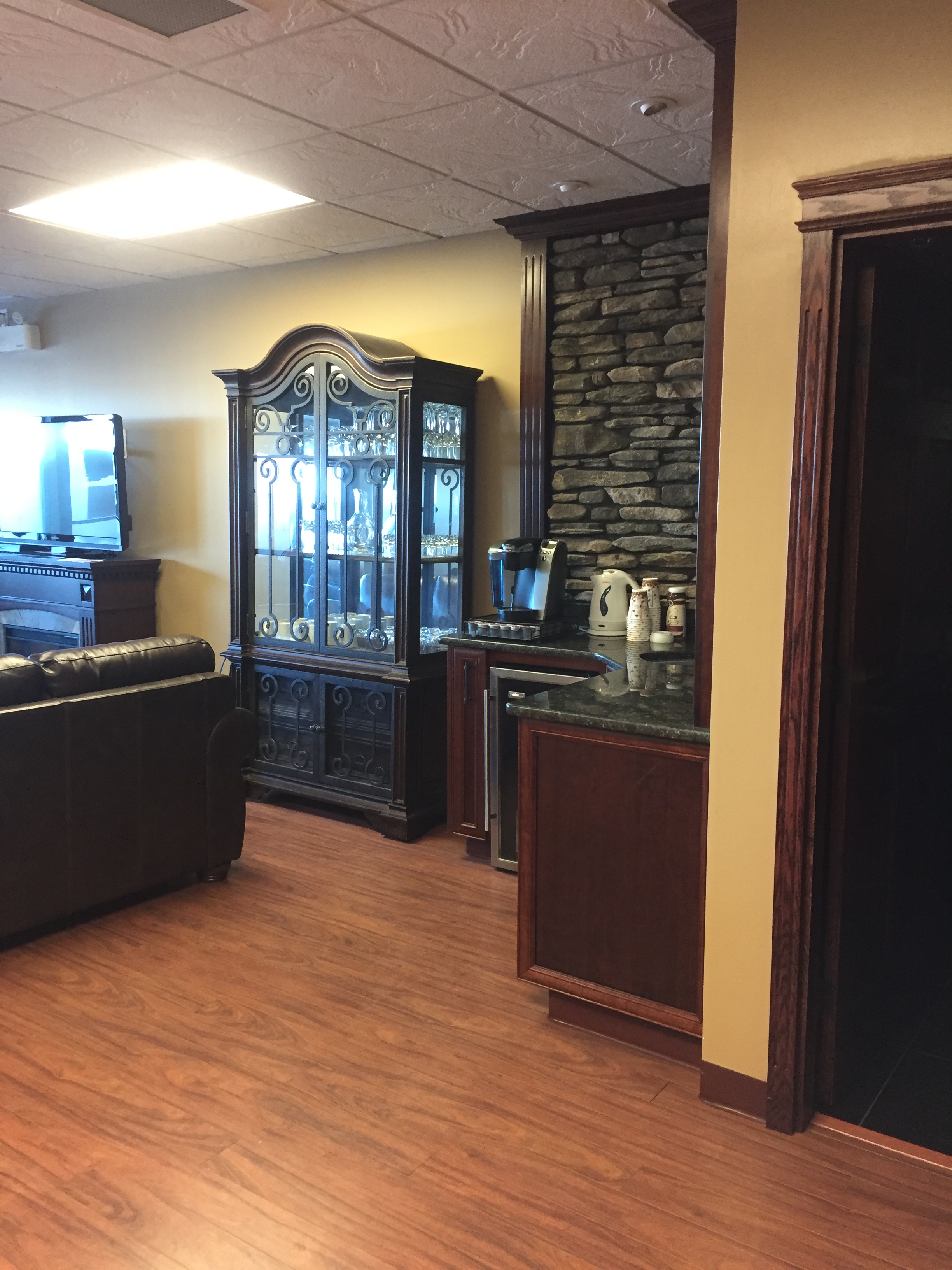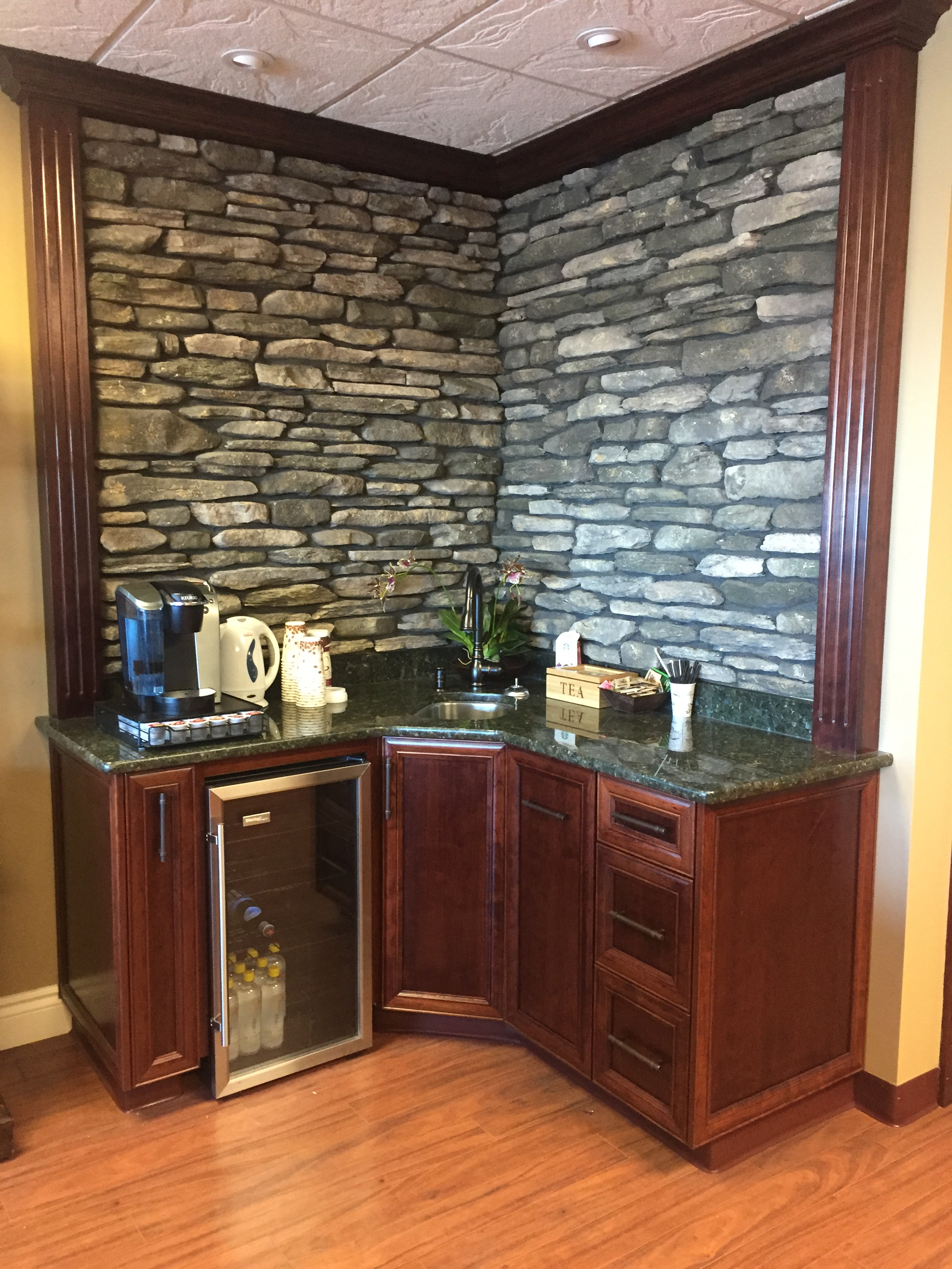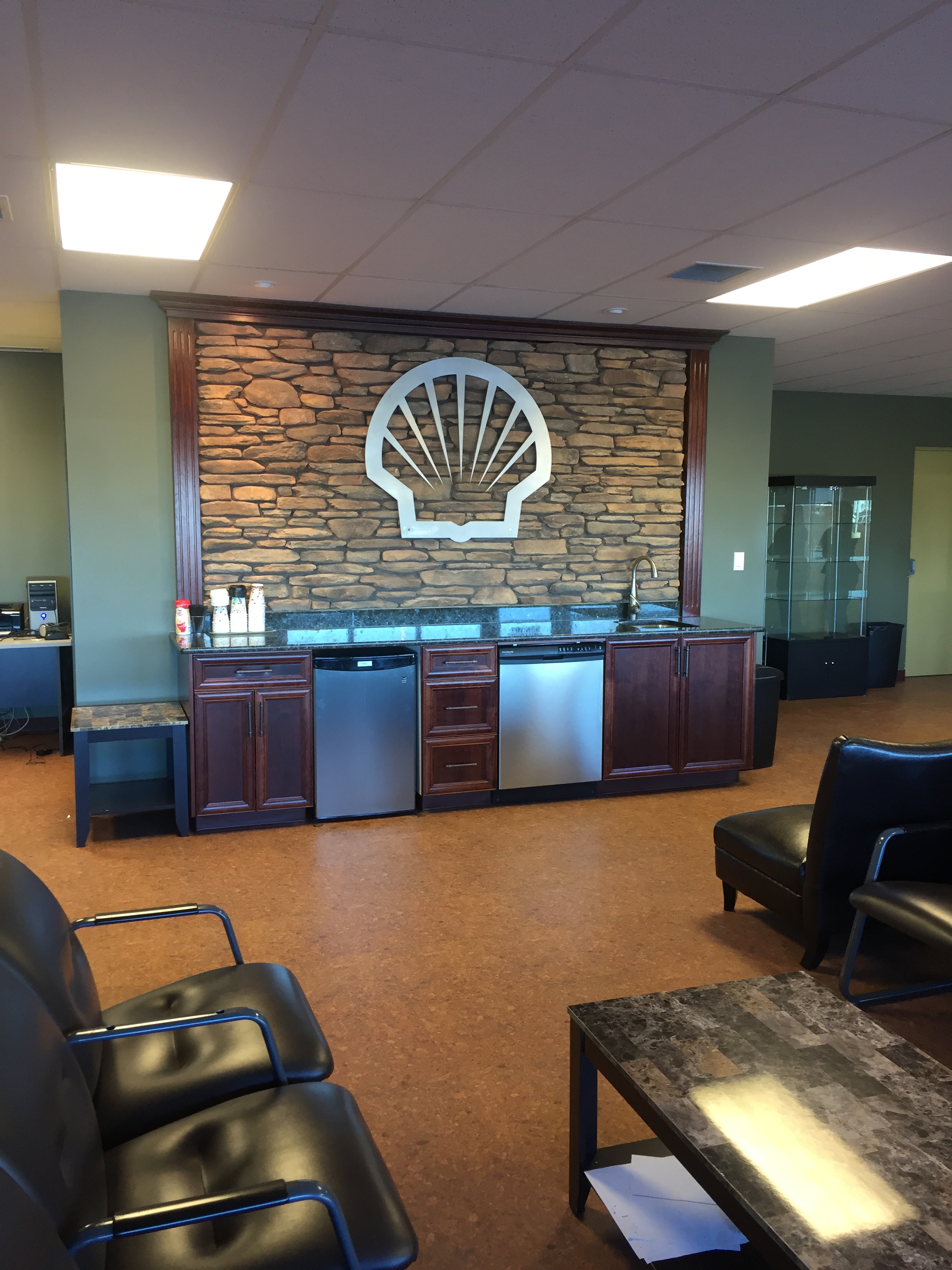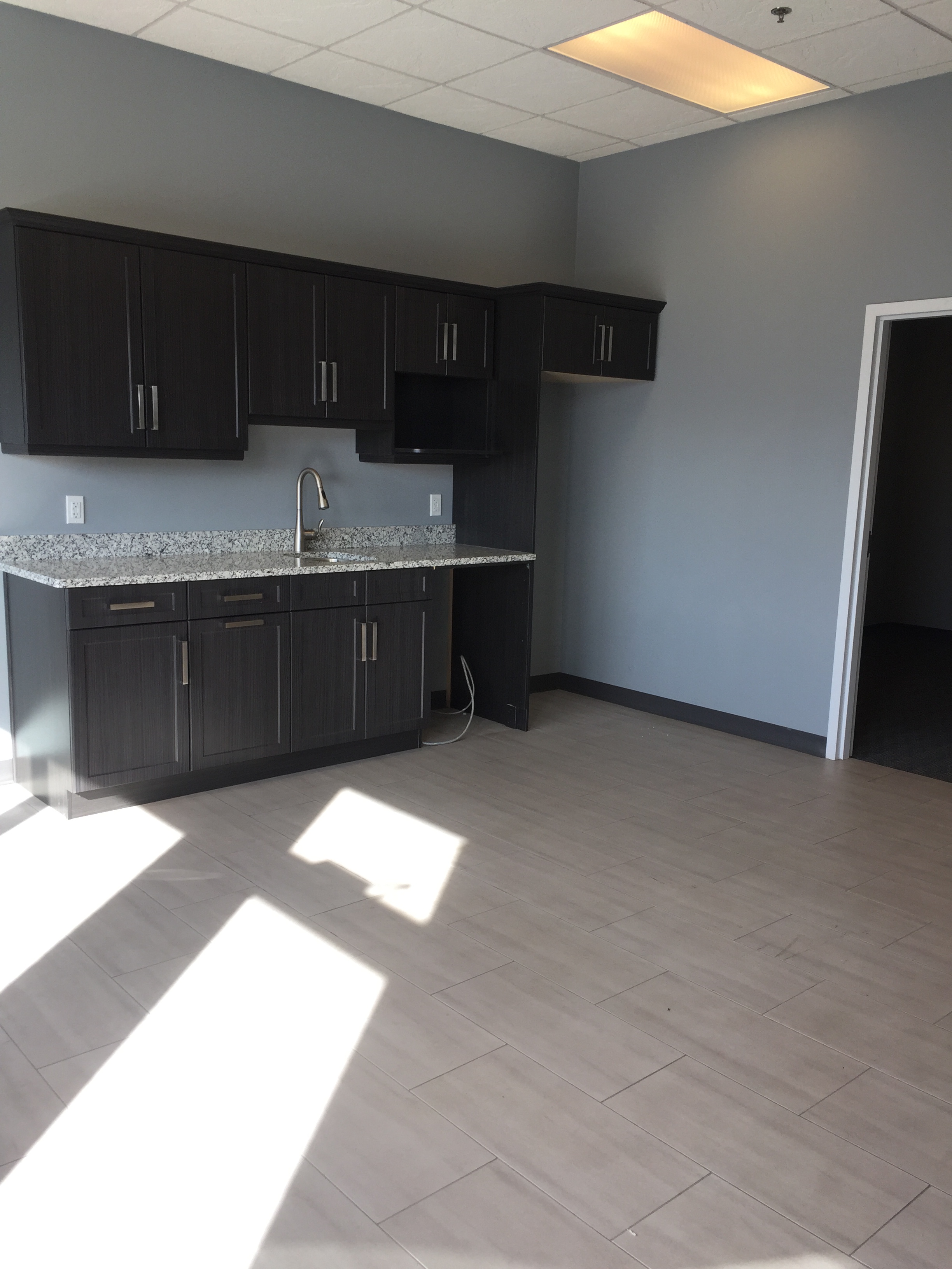 - Boardroom with granite bar sink and cabinets